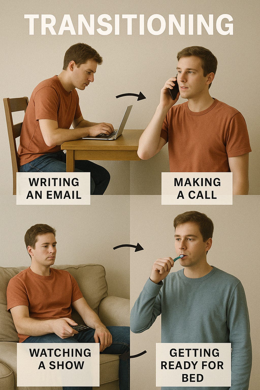 Moving from watching a show to getting ready for bed